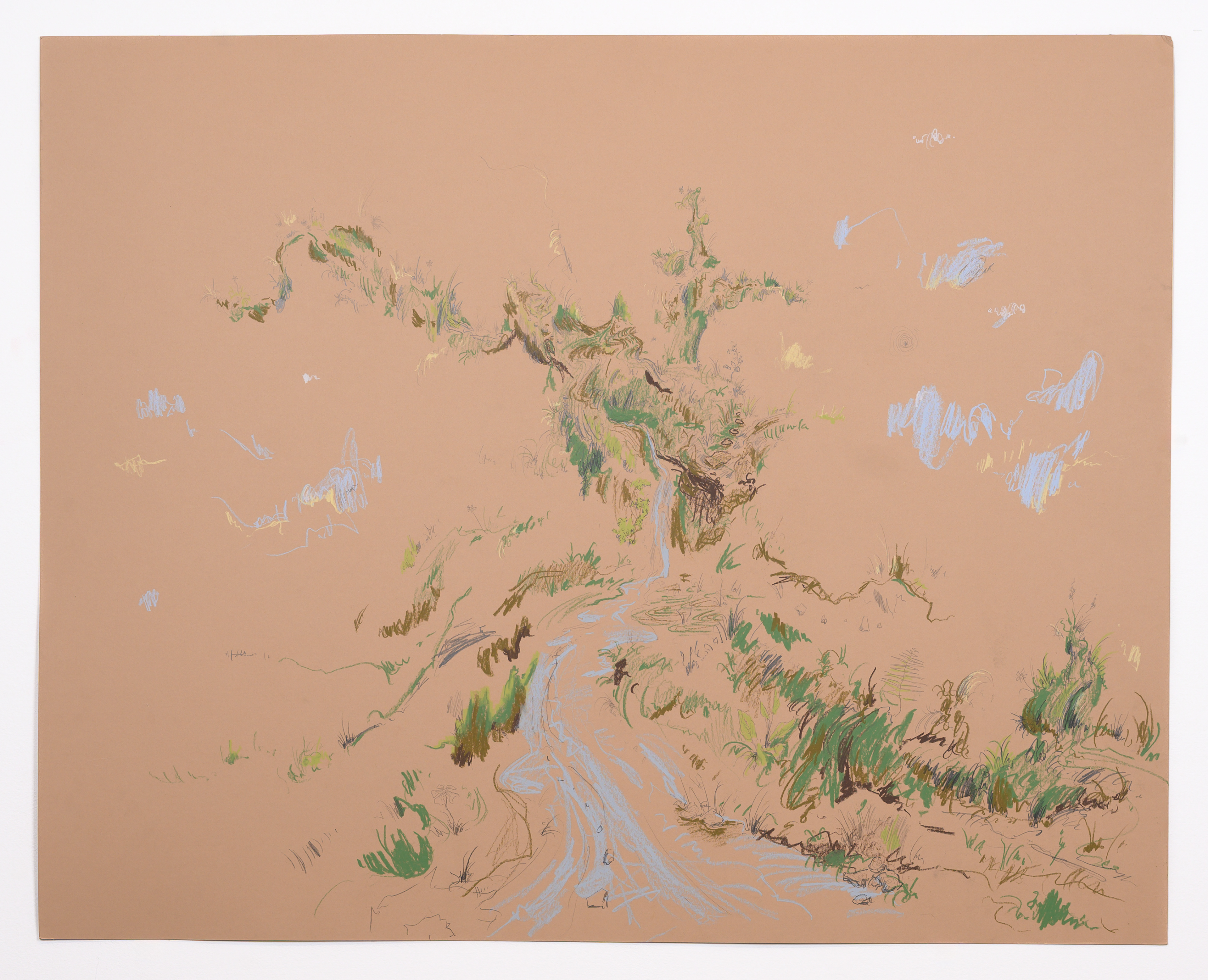 , 2025, wax pastels and graphite on illustration board, 32x40"